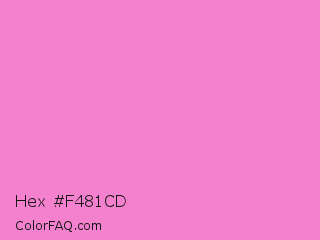Hex #f481cd Color is a light magenta color and the nearest color is Princess Perfume #ff85cf. Hex code #f481cd and RGB value is rgb(244,129,205). In RGB color space, this color is composed of 96% red, 51% green, 80% blue, In CMYK color space, this color is composed of 0% cyan, 47% magenta, 16% yellow , 4% black , In HSL color space, this color has a hue angle of 320° , 84% saturation and 73% lightness.