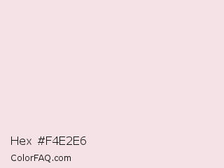 Hex #f4e2e6 Color is a very light red color and the nearest color is Pot Pourri #f5e7e2. Hex code #f4e2e6 and RGB value is rgb(244,226,230). In RGB color space, this color is composed of 96% red, 89% green, 90% blue, In CMYK color space, this color is composed of 0% cyan, 7% magenta, 6% yellow , 4% black , In HSL color space, this color has a hue angle of 347° , 45% saturation and 92% lightness.