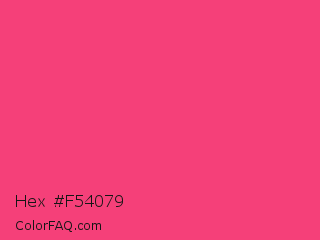 Hex #f54079 Color is a light rose color and the nearest color is Sasquatch Socks #ff4681. Hex code #f54079 and RGB value is rgb(245,64,121). In RGB color space, this color is composed of 96% red, 25% green, 47% blue, In CMYK color space, this color is composed of 0% cyan, 74% magenta, 51% yellow , 4% black , In HSL color space, this color has a hue angle of 341° , 90% saturation and 61% lightness.