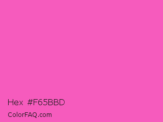 Hex #f65bbd Color is a light magenta color and the nearest color is Light Deep Pink #ff5ccd. Hex code #f65bbd and RGB value is rgb(246,91,189). In RGB color space, this color is composed of 96% red, 36% green, 74% blue, In CMYK color space, this color is composed of 0% cyan, 63% magenta, 23% yellow , 4% black , In HSL color space, this color has a hue angle of 322° , 90% saturation and 66% lightness.