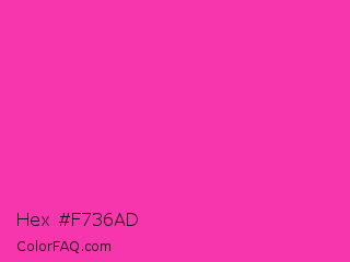 Hex #f736ad Color is a normal magenta color and the nearest color is Frostbite #e936a7. Hex code #f736ad and RGB value is rgb(247,54,173). In RGB color space, this color is composed of 97% red, 21% green, 68% blue, In CMYK color space, this color is composed of 0% cyan, 78% magenta, 30% yellow , 3% black , In HSL color space, this color has a hue angle of 323° , 92% saturation and 59% lightness.