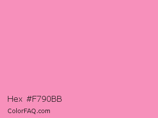 Hex #f790bb Color is a light rose color and the nearest color is Pastel Magenta #f49ac2. Hex code #f790bb and RGB value is rgb(247,144,187). In RGB color space, this color is composed of 97% red, 56% green, 73% blue, In CMYK color space, this color is composed of 0% cyan, 42% magenta, 24% yellow , 3% black , In HSL color space, this color has a hue angle of 335° , 87% saturation and 77% lightness.