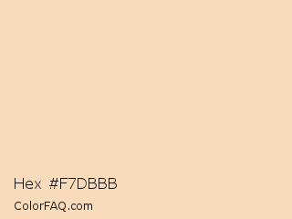Hex #f7dbbb Color is a very light orange color and the nearest color is Peach Puff #ffdab9. Hex code #f7dbbb and RGB value is rgb(247,219,187). In RGB color space, this color is composed of 97% red, 86% green, 73% blue, In CMYK color space, this color is composed of 0% cyan, 11% magenta, 24% yellow , 3% black , In HSL color space, this color has a hue angle of 32° , 79% saturation and 85% lightness.