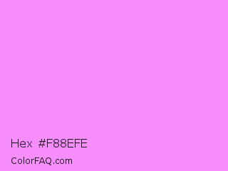 Hex #f88efe Color is a light magenta color and the nearest color is Light Fuchsia Pink #f984ef. Hex code #f88efe and RGB value is rgb(248,142,254). In RGB color space, this color is composed of 97% red, 56% green, 100% blue, In CMYK color space, this color is composed of 2% cyan, 44% magenta, 0% yellow , 0% black , In HSL color space, this color has a hue angle of 297° , 98% saturation and 78% lightness.