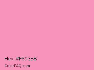Hex #f893bb Color is a light rose color and the nearest color is Pastel Magenta #f49ac2. Hex code #f893bb and RGB value is rgb(248,147,187). In RGB color space, this color is composed of 97% red, 58% green, 73% blue, In CMYK color space, this color is composed of 0% cyan, 41% magenta, 25% yellow , 3% black , In HSL color space, this color has a hue angle of 336° , 88% saturation and 77% lightness.