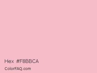 Hex #f8bbca Color is a very light red color and the nearest color is Orchid Pink #f2bdcd. Hex code #f8bbca and RGB value is rgb(248,187,202). In RGB color space, this color is composed of 97% red, 73% green, 79% blue, In CMYK color space, this color is composed of 0% cyan, 25% magenta, 19% yellow , 3% black , In HSL color space, this color has a hue angle of 345° , 81% saturation and 85% lightness.