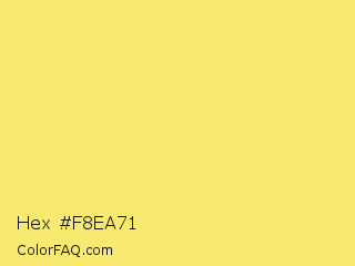 Hex #f8ea71 Color is a light yellow color and the nearest color is Marigold Yellow #fbe870. Hex code #f8ea71 and RGB value is rgb(248,234,113). In RGB color space, this color is composed of 97% red, 92% green, 44% blue, In CMYK color space, this color is composed of 0% cyan, 6% magenta, 54% yellow , 3% black , In HSL color space, this color has a hue angle of 54° , 91% saturation and 71% lightness.