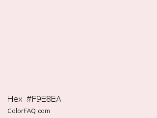Hex #f9e8ea Color is a very light red color and the nearest color is Dawn Pink #f3e9e5. Hex code #f9e8ea and RGB value is rgb(249,232,234). In RGB color space, this color is composed of 98% red, 91% green, 92% blue, In CMYK color space, this color is composed of 0% cyan, 7% magenta, 6% yellow , 2% black , In HSL color space, this color has a hue angle of 353° , 59% saturation and 94% lightness.