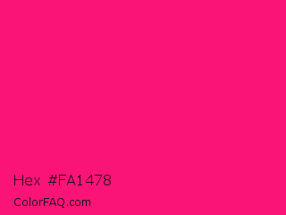 Hex #fa1478 Color is a normal rose color and the nearest color is Winter Sky #ff007c. Hex code #fa1478 and RGB value is rgb(250,20,120). In RGB color space, this color is composed of 98% red, 8% green, 47% blue, In CMYK color space, this color is composed of 0% cyan, 92% magenta, 52% yellow , 2% black , In HSL color space, this color has a hue angle of 334° , 96% saturation and 53% lightness.