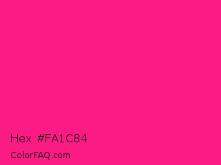 Hex #fa1c84 Color is a normal rose color and the nearest color is Fluorescent Pink #ff1493. Hex code #fa1c84 and RGB value is rgb(250,28,132). In RGB color space, this color is composed of 98% red, 11% green, 52% blue, In CMYK color space, this color is composed of 0% cyan, 89% magenta, 47% yellow , 2% black , In HSL color space, this color has a hue angle of 332° , 96% saturation and 55% lightness.