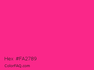 Hex #fa2789 Color is a normal rose color and the nearest color is Wild Strawberry Crayola #ff3399. Hex code #fa2789 and RGB value is rgb(250,39,137). In RGB color space, this color is composed of 98% red, 15% green, 54% blue, In CMYK color space, this color is composed of 0% cyan, 84% magenta, 45% yellow , 2% black , In HSL color space, this color has a hue angle of 332° , 95% saturation and 57% lightness.