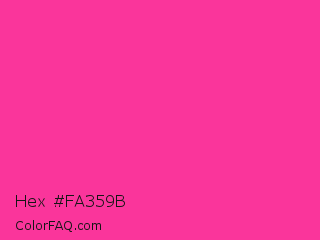 Hex #fa359b Color is a normal rose color and the nearest color is Wild Strawberry Crayola #ff3399. Hex code #fa359b and RGB value is rgb(250,53,155). In RGB color space, this color is composed of 98% red, 21% green, 61% blue, In CMYK color space, this color is composed of 0% cyan, 79% magenta, 38% yellow , 2% black , In HSL color space, this color has a hue angle of 329° , 95% saturation and 59% lightness.