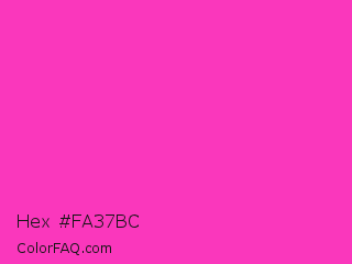 Hex #fa37bc Color is a normal magenta color and the nearest color is Razzle Dazzle Rose #ff33cc. Hex code #fa37bc and RGB value is rgb(250,55,188). In RGB color space, this color is composed of 98% red, 22% green, 74% blue, In CMYK color space, this color is composed of 0% cyan, 78% magenta, 25% yellow , 2% black , In HSL color space, this color has a hue angle of 319° , 95% saturation and 60% lightness.