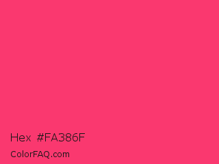 Hex #fa386f Color is a normal rose color and the nearest color is Neon Fuchsia #fe4164. Hex code #fa386f and RGB value is rgb(250,56,111). In RGB color space, this color is composed of 98% red, 22% green, 44% blue, In CMYK color space, this color is composed of 0% cyan, 78% magenta, 56% yellow , 2% black , In HSL color space, this color has a hue angle of 343° , 95% saturation and 60% lightness.