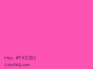 Hex #fa53b1 Color is a light magenta color and the nearest color is Brilliant Rose #f653a6. Hex code #fa53b1 and RGB value is rgb(250,83,177). In RGB color space, this color is composed of 98% red, 33% green, 69% blue, In CMYK color space, this color is composed of 0% cyan, 67% magenta, 29% yellow , 2% black , In HSL color space, this color has a hue angle of 326° , 94% saturation and 65% lightness.