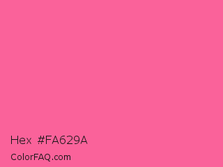Hex #fa629a Color is a light rose color and the nearest color is French Pink #fd6c9e. Hex code #fa629a and RGB value is rgb(250,98,154). In RGB color space, this color is composed of 98% red, 38% green, 60% blue, In CMYK color space, this color is composed of 0% cyan, 61% magenta, 38% yellow , 2% black , In HSL color space, this color has a hue angle of 338° , 94% saturation and 68% lightness.