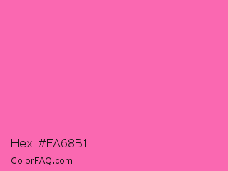 Hex #fa68b1 Color is a light rose color and the nearest color is Hot Pink #ff69b4. Hex code #fa68b1 and RGB value is rgb(250,104,177). In RGB color space, this color is composed of 98% red, 41% green, 69% blue, In CMYK color space, this color is composed of 0% cyan, 58% magenta, 29% yellow , 2% black , In HSL color space, this color has a hue angle of 330° , 94% saturation and 69% lightness.