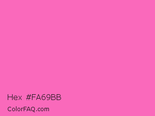Hex #fa69bb Color is a light magenta color and the nearest color is Hot Pink #ff69b4. Hex code #fa69bb and RGB value is rgb(250,105,187). In RGB color space, this color is composed of 98% red, 41% green, 73% blue, In CMYK color space, this color is composed of 0% cyan, 58% magenta, 25% yellow , 2% black , In HSL color space, this color has a hue angle of 326° , 94% saturation and 70% lightness.