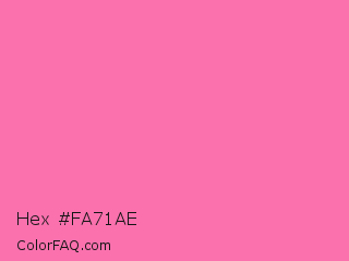 Hex #fa71ae Color is a light rose color and the nearest color is Hot Pink #ff69b4. Hex code #fa71ae and RGB value is rgb(250,113,174). In RGB color space, this color is composed of 98% red, 44% green, 68% blue, In CMYK color space, this color is composed of 0% cyan, 55% magenta, 30% yellow , 2% black , In HSL color space, this color has a hue angle of 333° , 93% saturation and 71% lightness.