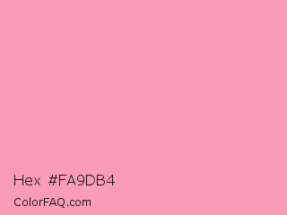 Hex #fa9db4 Color is a light red color and the nearest color is Amaranth Pink #f19cbb. Hex code #fa9db4 and RGB value is rgb(250,157,180). In RGB color space, this color is composed of 98% red, 62% green, 71% blue, In CMYK color space, this color is composed of 0% cyan, 37% magenta, 28% yellow , 2% black , In HSL color space, this color has a hue angle of 345° , 90% saturation and 80% lightness.