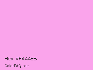 Hex #faa4eb Color is a very light magenta color and the nearest color is Lavender Rose #fba0e3. Hex code #faa4eb and RGB value is rgb(250,164,235). In RGB color space, this color is composed of 98% red, 64% green, 92% blue, In CMYK color space, this color is composed of 0% cyan, 34% magenta, 6% yellow , 2% black , In HSL color space, this color has a hue angle of 310° , 90% saturation and 81% lightness.