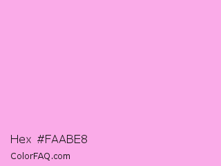 Hex #faabe8 Color is a very light magenta color and the nearest color is Lavender Rose #fba0e3. Hex code #faabe8 and RGB value is rgb(250,171,232). In RGB color space, this color is composed of 98% red, 67% green, 91% blue, In CMYK color space, this color is composed of 0% cyan, 32% magenta, 7% yellow , 2% black , In HSL color space, this color has a hue angle of 314° , 89% saturation and 83% lightness.
