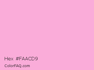 Hex #faacd9 Color is a very light magenta color and the nearest color is Lavender Pink #fbaed2. Hex code #faacd9 and RGB value is rgb(250,172,217). In RGB color space, this color is composed of 98% red, 67% green, 85% blue, In CMYK color space, this color is composed of 0% cyan, 31% magenta, 13% yellow , 2% black , In HSL color space, this color has a hue angle of 325° , 89% saturation and 83% lightness.