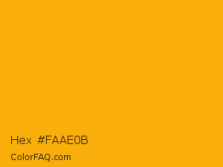 Hex #faae0b Color is a normal orange color and the nearest color is Sun #fbac13. Hex code #faae0b and RGB value is rgb(250,174,11). In RGB color space, this color is composed of 98% red, 68% green, 4% blue, In CMYK color space, this color is composed of 0% cyan, 30% magenta, 96% yellow , 2% black , In HSL color space, this color has a hue angle of 41° , 96% saturation and 51% lightness.