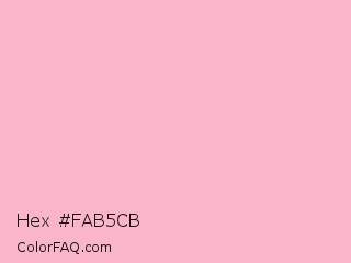 Hex #fab5cb Color is a very light rose color and the nearest color is Cherry Blossom Pink #ffb7c5. Hex code #fab5cb and RGB value is rgb(250,181,203). In RGB color space, this color is composed of 98% red, 71% green, 80% blue, In CMYK color space, this color is composed of 0% cyan, 28% magenta, 19% yellow , 2% black , In HSL color space, this color has a hue angle of 341° , 87% saturation and 85% lightness.
