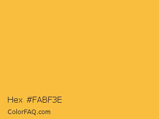 Hex #fabf3e Color is a light orange color and the nearest color is Maximum Yellow Red #f2ba49. Hex code #fabf3e and RGB value is rgb(250,191,62). In RGB color space, this color is composed of 98% red, 75% green, 24% blue, In CMYK color space, this color is composed of 0% cyan, 24% magenta, 75% yellow , 2% black , In HSL color space, this color has a hue angle of 41° , 95% saturation and 61% lightness.
