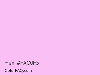 Hex #fac0f5 Color is a very light magenta color and the nearest color is Electric Lavender #f4bbff. Hex code #fac0f5 and RGB value is rgb(250,192,245). In RGB color space, this color is composed of 98% red, 75% green, 96% blue, In CMYK color space, this color is composed of 0% cyan, 23% magenta, 2% yellow , 2% black , In HSL color space, this color has a hue angle of 305° , 85% saturation and 87% lightness.