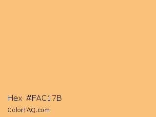 Hex #fac17b Color is a light orange color and the nearest color is Topaz #ffc87c. Hex code #fac17b and RGB value is rgb(250,193,123). In RGB color space, this color is composed of 98% red, 76% green, 48% blue, In CMYK color space, this color is composed of 0% cyan, 23% magenta, 51% yellow , 2% black , In HSL color space, this color has a hue angle of 33° , 93% saturation and 73% lightness.