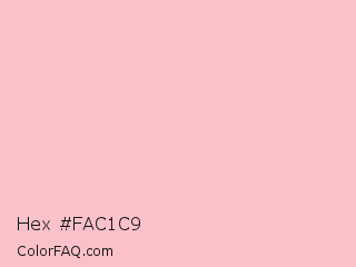 Hex #fac1c9 Color is a very light red color and the nearest color is Pink #ffc0cb. Hex code #fac1c9 and RGB value is rgb(250,193,201). In RGB color space, this color is composed of 98% red, 76% green, 79% blue, In CMYK color space, this color is composed of 0% cyan, 23% magenta, 20% yellow , 2% black , In HSL color space, this color has a hue angle of 352° , 85% saturation and 87% lightness.