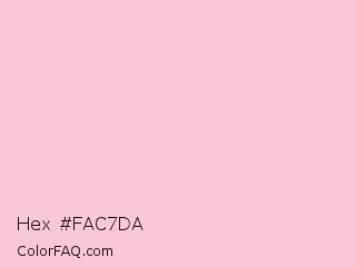 Hex #fac7da Color is a very light rose color and the nearest color is Azalea #f7c8da. Hex code #fac7da and RGB value is rgb(250,199,218). In RGB color space, this color is composed of 98% red, 78% green, 85% blue, In CMYK color space, this color is composed of 0% cyan, 20% magenta, 13% yellow , 2% black , In HSL color space, this color has a hue angle of 338° , 84% saturation and 88% lightness.