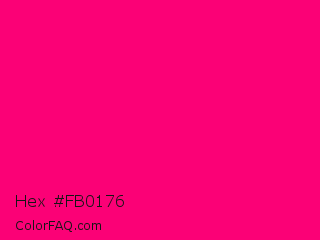 Hex #fb0176 Color is a normal rose color and the nearest color is Winter Sky #ff007c. Hex code #fb0176 and RGB value is rgb(251,1,118). In RGB color space, this color is composed of 98% red, 0% green, 46% blue, In CMYK color space, this color is composed of 0% cyan, 100% magenta, 53% yellow , 2% black , In HSL color space, this color has a hue angle of 332° , 99% saturation and 49% lightness.