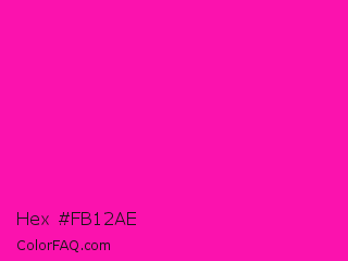 Hex #fb12ae Color is a normal magenta color and the nearest color is Shocking Pink #fc0fc0. Hex code #fb12ae and RGB value is rgb(251,18,174). In RGB color space, this color is composed of 98% red, 7% green, 68% blue, In CMYK color space, this color is composed of 0% cyan, 93% magenta, 31% yellow , 2% black , In HSL color space, this color has a hue angle of 320° , 97% saturation and 53% lightness.