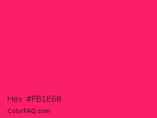 Hex #fb1e68 Color is a normal rose color and the nearest color is Awesome #ff2052. Hex code #fb1e68 and RGB value is rgb(251,30,104). In RGB color space, this color is composed of 98% red, 12% green, 41% blue, In CMYK color space, this color is composed of 0% cyan, 88% magenta, 59% yellow , 2% black , In HSL color space, this color has a hue angle of 340° , 97% saturation and 55% lightness.