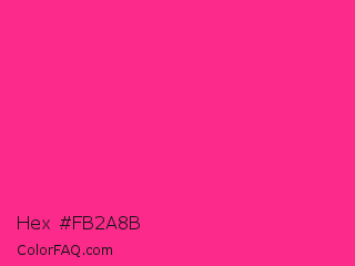 Hex #fb2a8b Color is a normal rose color and the nearest color is Wild Strawberry Crayola #ff3399. Hex code #fb2a8b and RGB value is rgb(251,42,139). In RGB color space, this color is composed of 98% red, 16% green, 55% blue, In CMYK color space, this color is composed of 0% cyan, 83% magenta, 45% yellow , 2% black , In HSL color space, this color has a hue angle of 332° , 96% saturation and 57% lightness.