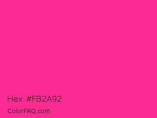 Hex #fb2a92 Color is a normal rose color and the nearest color is Wild Strawberry Crayola #ff3399. Hex code #fb2a92 and RGB value is rgb(251,42,146). In RGB color space, this color is composed of 98% red, 16% green, 57% blue, In CMYK color space, this color is composed of 0% cyan, 83% magenta, 42% yellow , 2% black , In HSL color space, this color has a hue angle of 330° , 96% saturation and 57% lightness.
