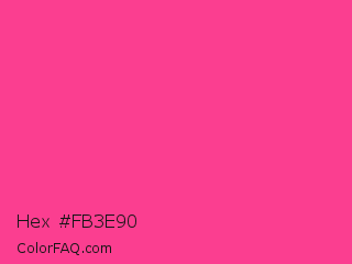 Hex #fb3e90 Color is a light rose color and the nearest color is French Fuchsia #fd3f92. Hex code #fb3e90 and RGB value is rgb(251,62,144). In RGB color space, this color is composed of 98% red, 24% green, 56% blue, In CMYK color space, this color is composed of 0% cyan, 75% magenta, 43% yellow , 2% black , In HSL color space, this color has a hue angle of 334° , 96% saturation and 61% lightness.