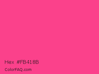 Hex #fb418b Color is a light rose color and the nearest color is Violet Red #f7468a. Hex code #fb418b and RGB value is rgb(251,65,139). In RGB color space, this color is composed of 98% red, 25% green, 55% blue, In CMYK color space, this color is composed of 0% cyan, 74% magenta, 45% yellow , 2% black , In HSL color space, this color has a hue angle of 336° , 96% saturation and 62% lightness.