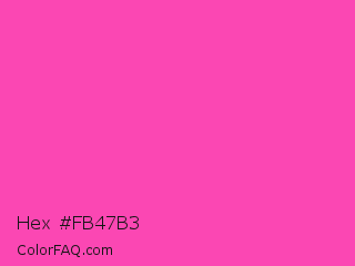 Hex #fb47b3 Color is a light magenta color and the nearest color is Wild Strawberry #ff43a4. Hex code #fb47b3 and RGB value is rgb(251,71,179). In RGB color space, this color is composed of 98% red, 28% green, 70% blue, In CMYK color space, this color is composed of 0% cyan, 72% magenta, 29% yellow , 2% black , In HSL color space, this color has a hue angle of 324° , 96% saturation and 63% lightness.