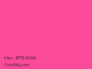 Hex #fb4a9a Color is a light rose color and the nearest color is Rose Bonbon #f9429e. Hex code #fb4a9a and RGB value is rgb(251,74,154). In RGB color space, this color is composed of 98% red, 29% green, 60% blue, In CMYK color space, this color is composed of 0% cyan, 71% magenta, 39% yellow , 2% black , In HSL color space, this color has a hue angle of 333° , 96% saturation and 64% lightness.