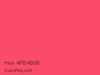 Hex #fb4b6b Color is a light red color and the nearest color is Infra Red #ff496c. Hex code #fb4b6b and RGB value is rgb(251,75,107). In RGB color space, this color is composed of 98% red, 29% green, 42% blue, In CMYK color space, this color is composed of 0% cyan, 70% magenta, 57% yellow , 2% black , In HSL color space, this color has a hue angle of 349° , 96% saturation and 64% lightness.