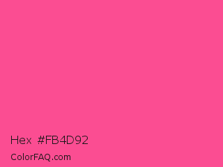 Hex #fb4d92 Color is a light rose color and the nearest color is Violet Red #f75394. Hex code #fb4d92 and RGB value is rgb(251,77,146). In RGB color space, this color is composed of 98% red, 30% green, 57% blue, In CMYK color space, this color is composed of 0% cyan, 69% magenta, 42% yellow , 2% black , In HSL color space, this color has a hue angle of 336° , 96% saturation and 64% lightness.