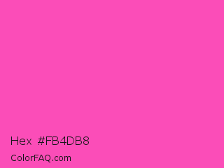 Hex #fb4db8 Color is a light magenta color and the nearest color is Brilliant Rose #f653a6. Hex code #fb4db8 and RGB value is rgb(251,77,184). In RGB color space, this color is composed of 98% red, 30% green, 72% blue, In CMYK color space, this color is composed of 0% cyan, 69% magenta, 27% yellow , 2% black , In HSL color space, this color has a hue angle of 323° , 96% saturation and 64% lightness.
