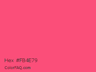 Hex #fb4e79 Color is a light red color and the nearest color is Fiery Rose #ff5470. Hex code #fb4e79 and RGB value is rgb(251,78,121). In RGB color space, this color is composed of 98% red, 31% green, 47% blue, In CMYK color space, this color is composed of 0% cyan, 69% magenta, 52% yellow , 2% black , In HSL color space, this color has a hue angle of 345° , 96% saturation and 65% lightness.