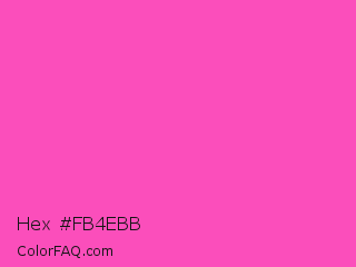 Hex #fb4ebb Color is a light magenta color and the nearest color is Brilliant Rose #f653a6. Hex code #fb4ebb and RGB value is rgb(251,78,187). In RGB color space, this color is composed of 98% red, 31% green, 73% blue, In CMYK color space, this color is composed of 0% cyan, 69% magenta, 25% yellow , 2% black , In HSL color space, this color has a hue angle of 322° , 96% saturation and 65% lightness.