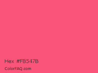 Hex #fb547b Color is a light red color and the nearest color is Wild Watermelon #fd5b78. Hex code #fb547b and RGB value is rgb(251,84,123). In RGB color space, this color is composed of 98% red, 33% green, 48% blue, In CMYK color space, this color is composed of 0% cyan, 67% magenta, 51% yellow , 2% black , In HSL color space, this color has a hue angle of 346° , 95% saturation and 66% lightness.