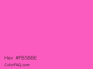 Hex #fb5bbe Color is a light magenta color and the nearest color is Light Deep Pink #ff5ccd. Hex code #fb5bbe and RGB value is rgb(251,91,190). In RGB color space, this color is composed of 98% red, 36% green, 75% blue, In CMYK color space, this color is composed of 0% cyan, 64% magenta, 24% yellow , 2% black , In HSL color space, this color has a hue angle of 323° , 95% saturation and 67% lightness.